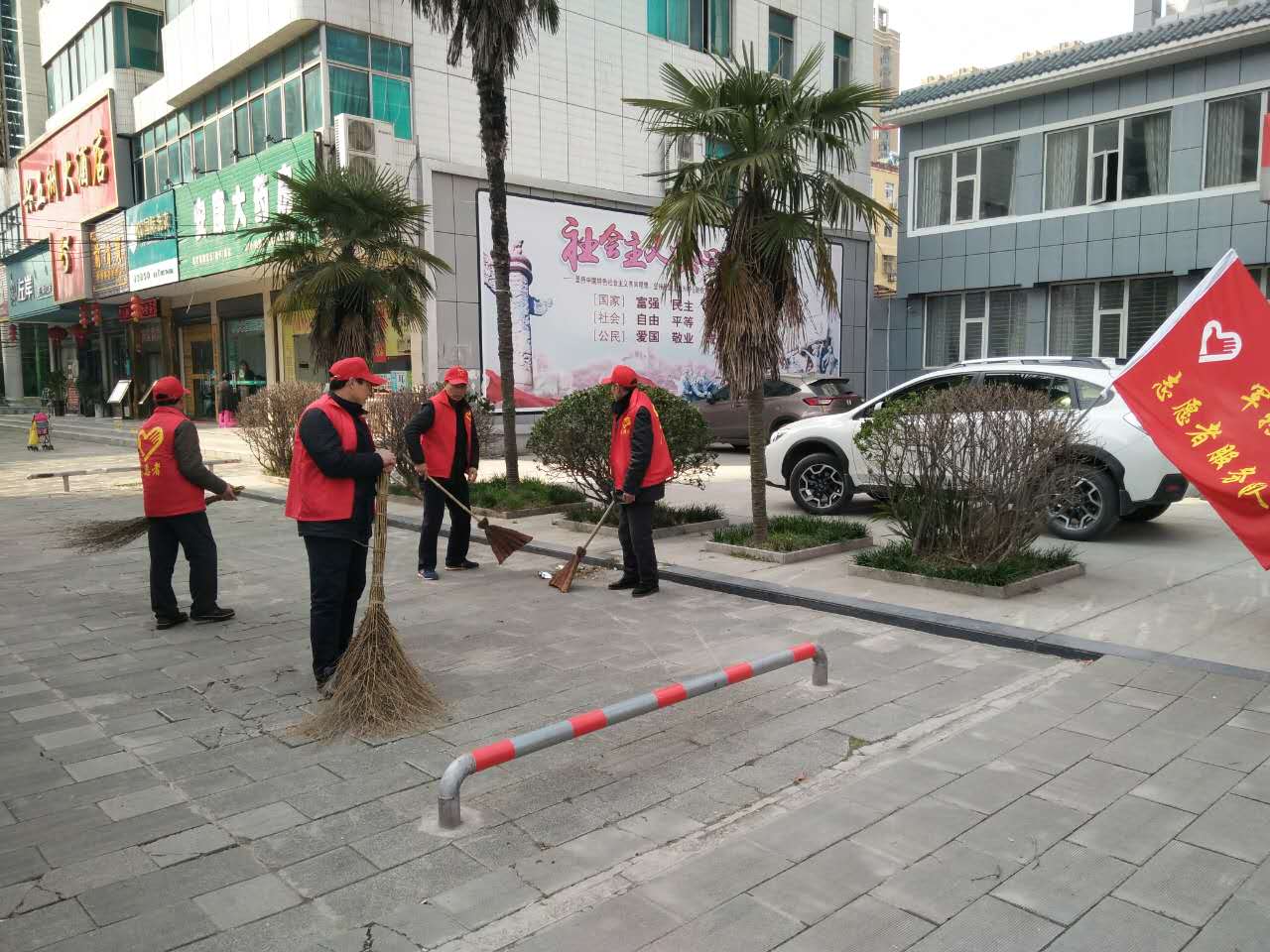 2月24日,市人社局组织军转干部志愿者服务活动,来自全市二十余名军转干部走上街头,清扫路面垃圾。